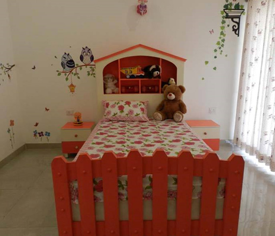 My 4 year daughter loves her pink room with all those animals and birds adoring the walls. This cute bed is self designed, do you find it adorable too?