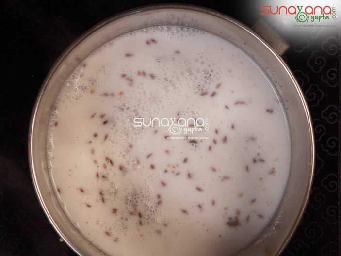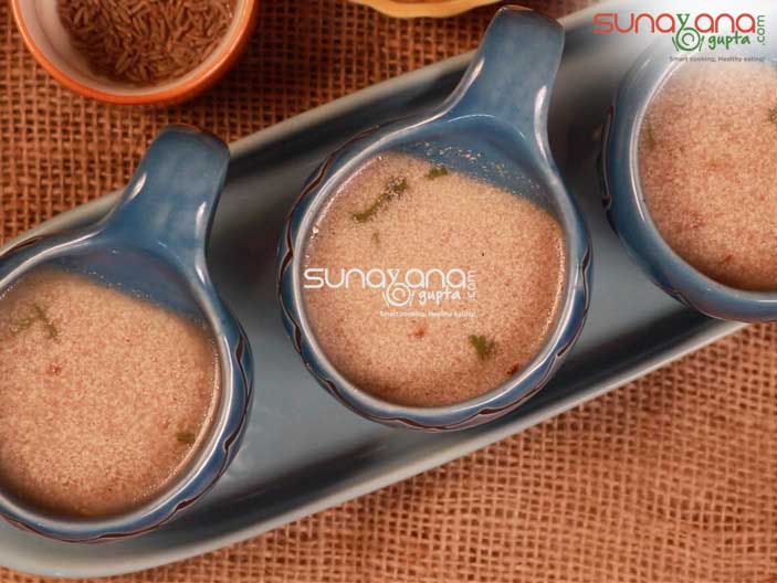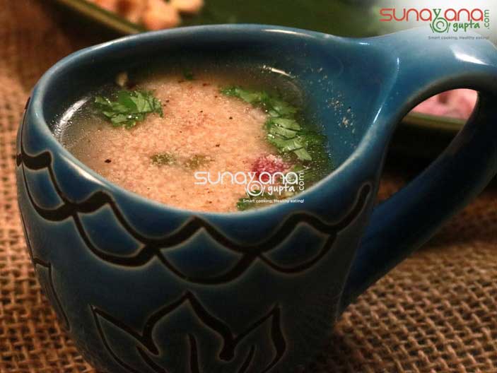 This savory drink lightly perked with ginger, chilli, black pepper is usually served for Breakfast since Ragi is known to provide energy and Fiber. Besides it is filling and for a change you must some day skip having Tea and try this Ragi Malt along with your breakfast. It is also great to have it as an evening snack or just as a hearty soup when you plan to skip dinner and instead want to have something refreshing and healthy. Of course, this is good for Weight Loss Diet as well.